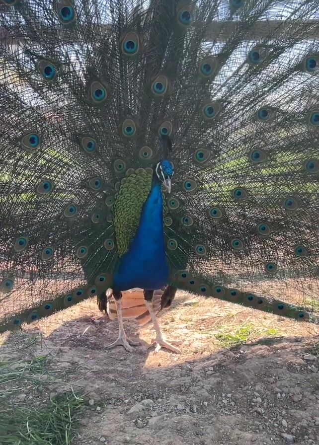 - "peacock standing on the ground with its tail feathers fanned out" by FM-wpxuq1, licensed under CC BY 4.0