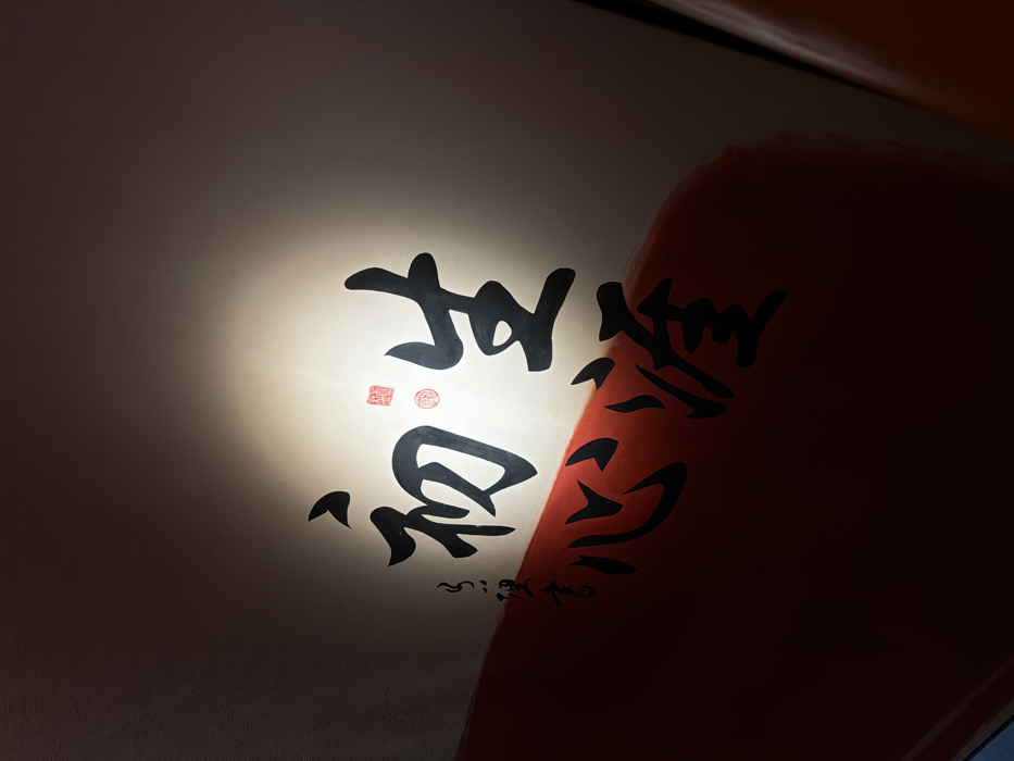- "An indoor scene in Yerevan, Armenia, displays a focused light beam illuminating black Chinese calligraphy on a light-colored wall" by FM-Ba7N83, licensed under CC BY 4.0