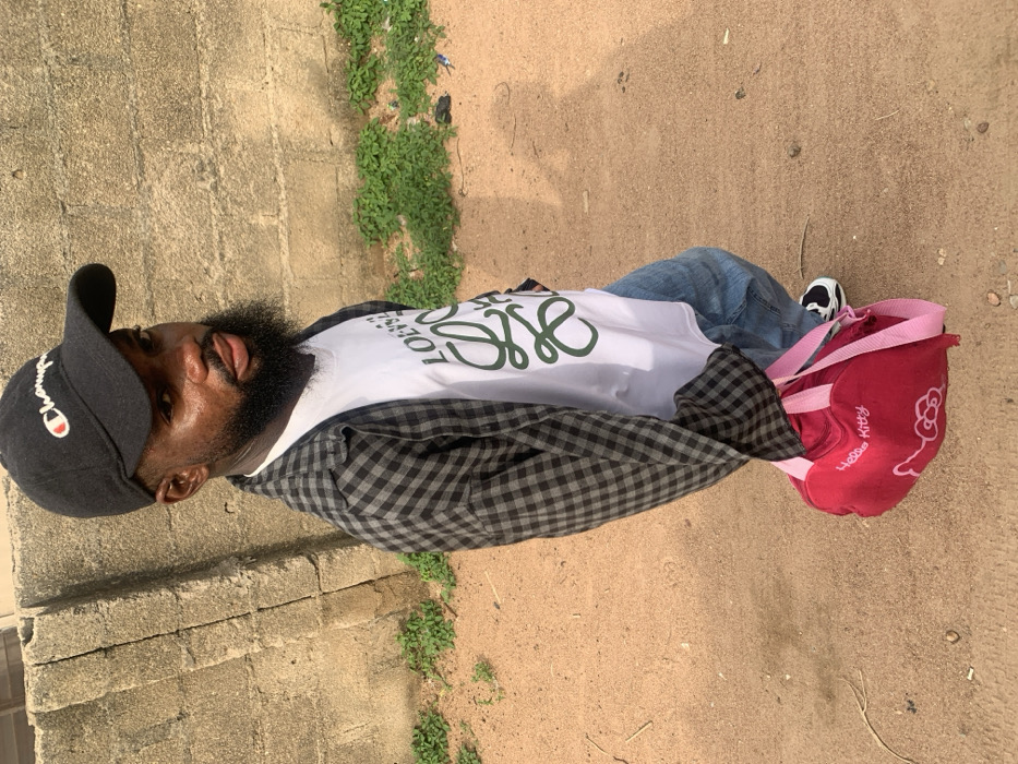 In Eika-Adagu New Layout, Nigeria, a short-statured male individual stands on an unpaved reddish-brown dirt path