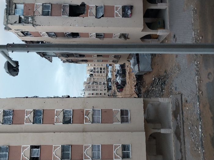 - "The photo shows damaged buildings and a street littered with debris, possibly from conflict or natural disaster" by FM-2XCCl2, licensed under CC BY 4.0