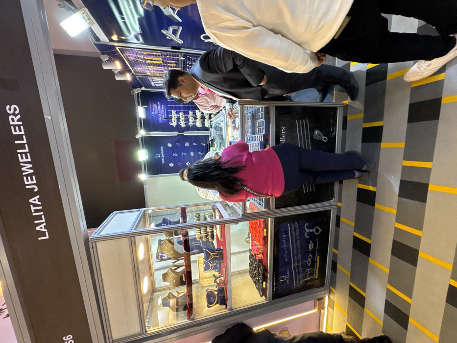 An indoor scene depicts a jewellery exhibition booth for "LALITA JEWELLERS
