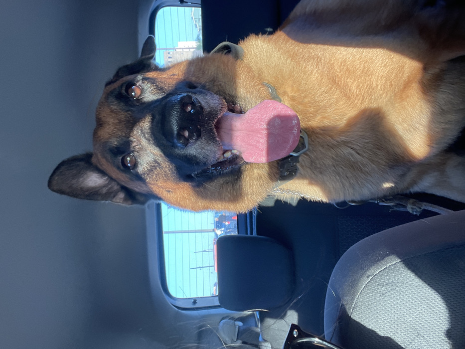 - "A German Shepherd dog is depicted in the rear passenger compartment of a vehicle during daylight hours" by FM-ckPo02, licensed under CC BY 4.0