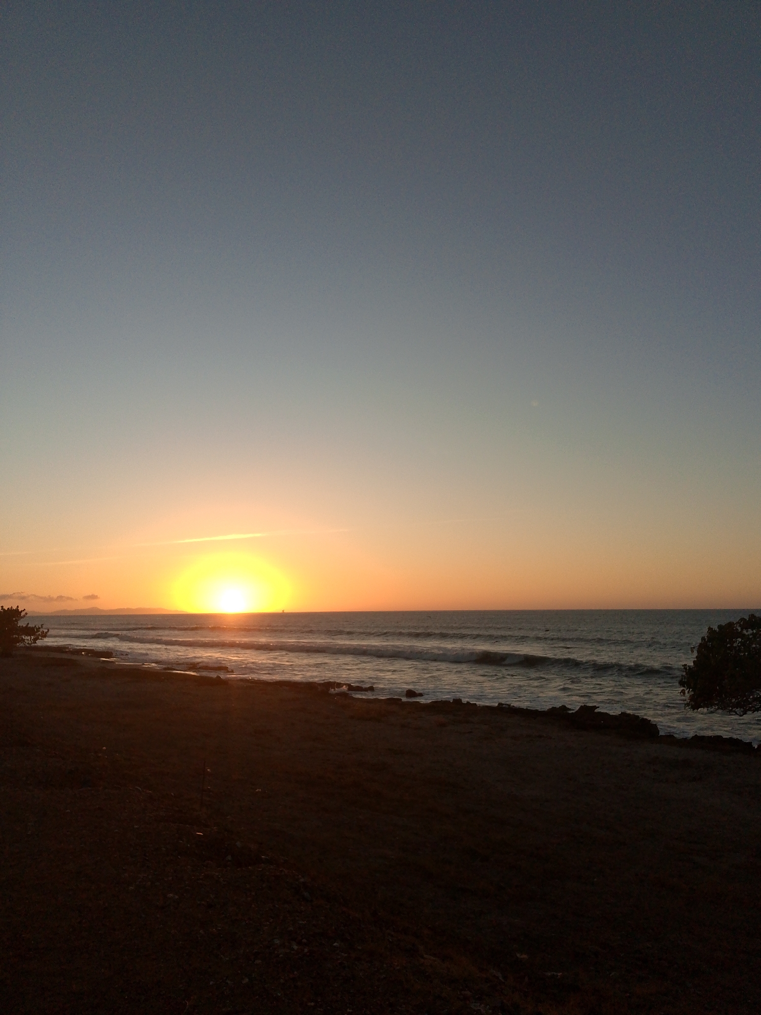 This image depicts a sunset over the ocean at Juan Griego, Venezuela