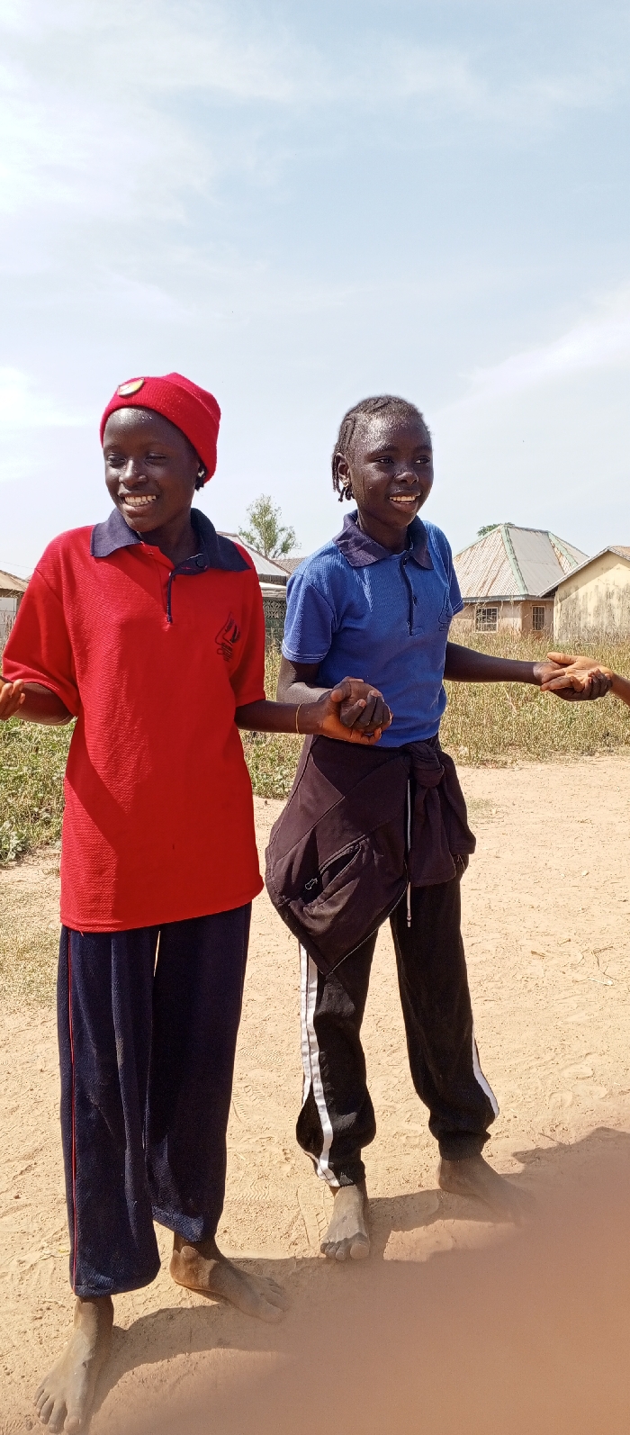 - "The image depicts two young individuals, identified as female, standing barefoot on dry, light brown earth under a clear, bright sky in Kakau, Nigeria" by FM-9pOP92, licensed under CC BY 4.0