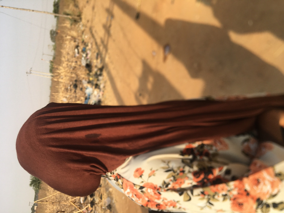 - "A person wearing a brown hijab and a floral-patterned shirt stands beside a dirt road littered with trash" by FM-rlK6J2, licensed under CC BY 4.0