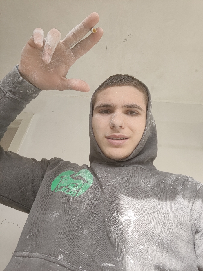- "An upward-angled photograph depicts a young adult male, presumably in Deerlijk, Belgium, within an interior room under construction or renovation" by FM-S05263, licensed under CC BY 4.0