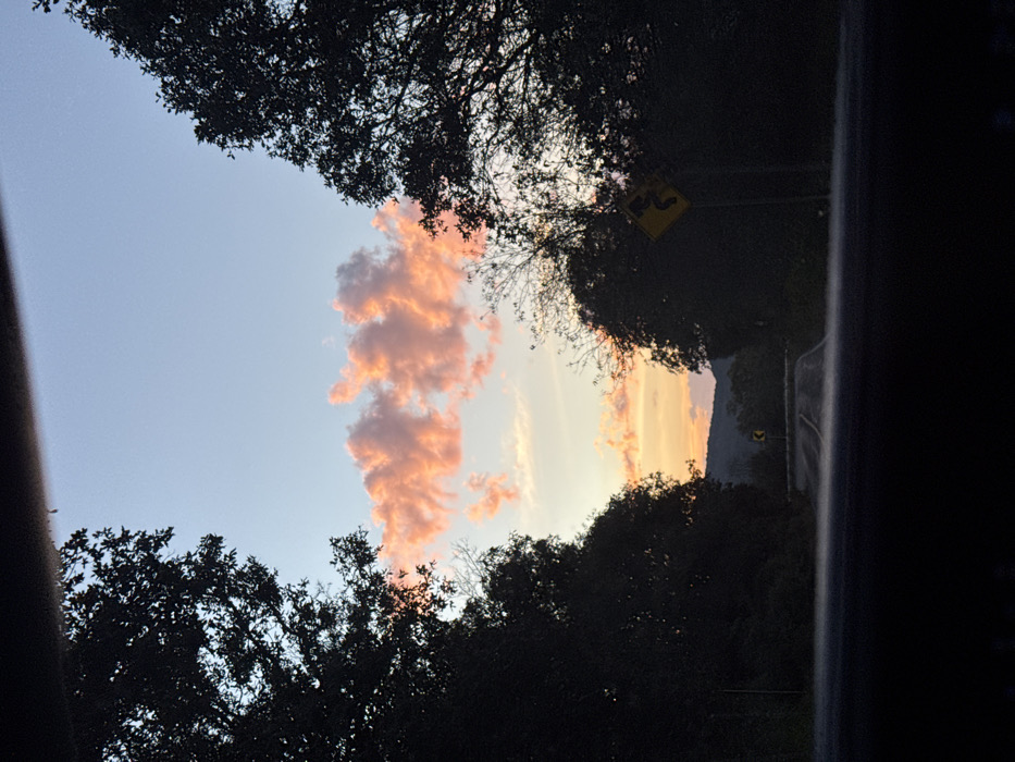 - "Pink-tinted clouds fill the sky, framed by silhouetted trees" by FM-Opy4m2, licensed under CC BY 4.0