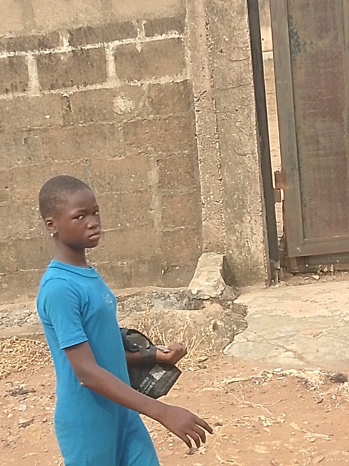 The image captures a young female, approximately 10-14 years old, standing outdoors in Agege, Nigeria