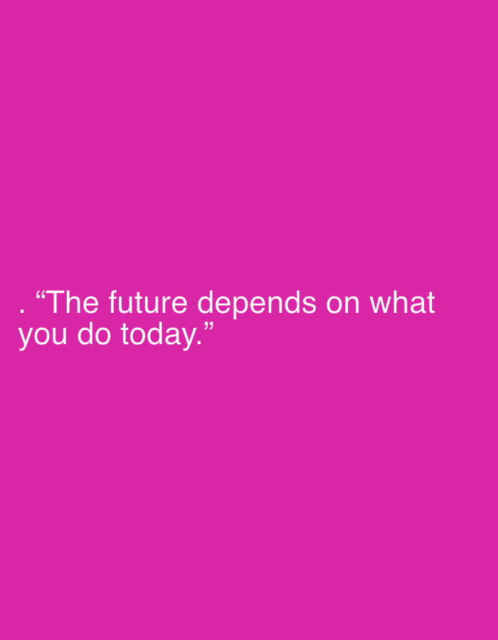 A simple, solid magenta background fills the frame. Near the bottom, white text states: "The future depends on what you do today." The statement is enclosed in quotation marks, with a period at the beginning and a period at the end. The clean design focuses attention on the motivational message.