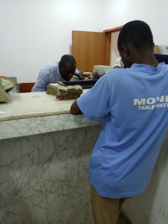 This image depicts an indoor scene within a commercial or financial establishment in Nigeria