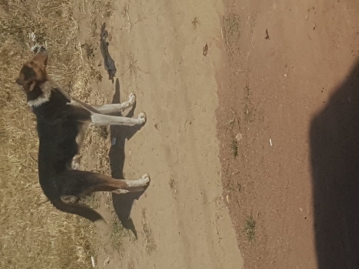- "The image displays a medium-sized, tri-colored male dog standing on dry, sandy terrain in an outdoor setting within Jos, Nigeria" by FM-GBNCI2, licensed under CC BY 4.0