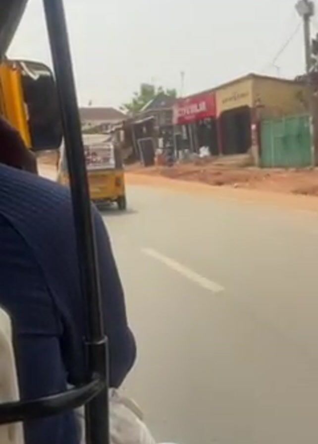The video is taken from inside a moving auto rickshaw, looking out to the right