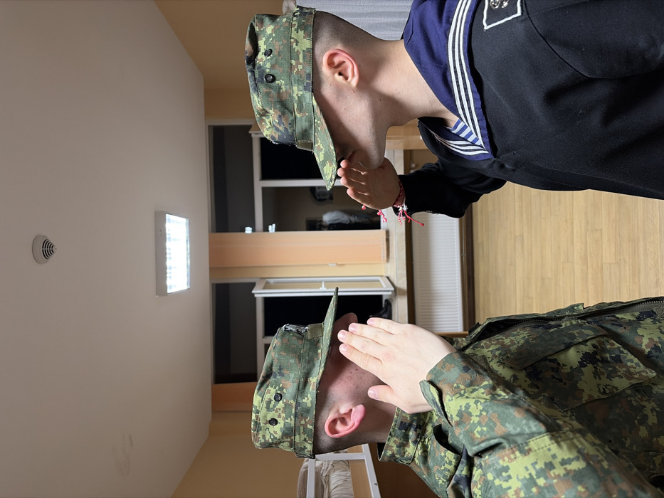 - "The image displays two young adult males performing military salutes while facing each other in an indoor setting, likely a dormitory room at the Nikola Vaptsarov Naval Academy in Varna, Bulgaria" by FM-iCkYo2, licensed under CC BY 4.0