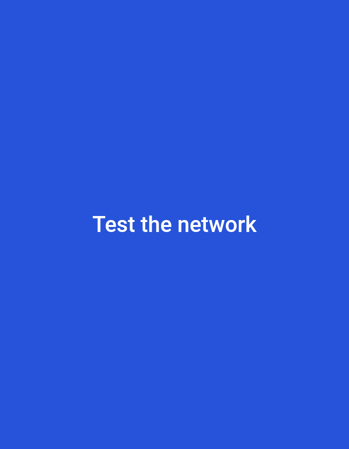 The image is a solid blue background with the text "Test the network" in white, centered on the screen