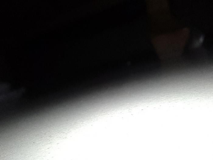 The image displays a stark contrast between darkness and brightness. The upper portion is dominated by deep black, while the lower section transitions into intense white. A vague shape emerges from the blackness, hinting at a possible human form. The overall impression is one of obscurity and concealment, with only a fraction revealed by the intense light.