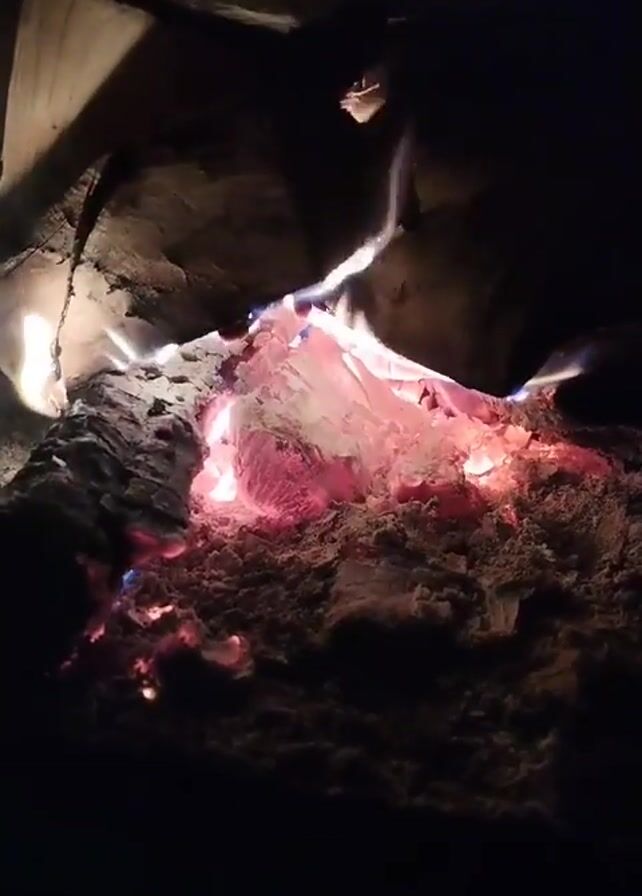 fire burning in what appears to be a fireplace or stove