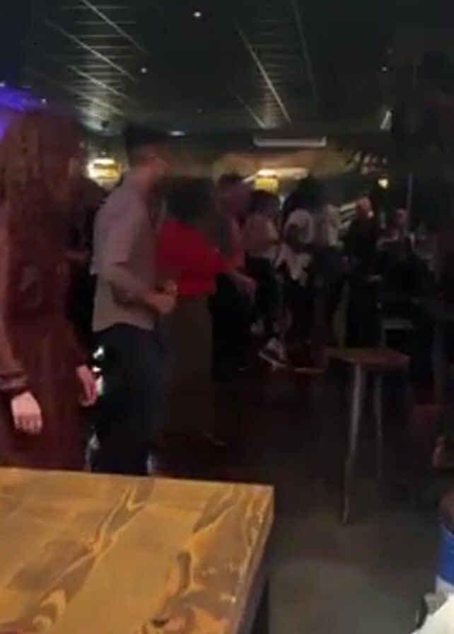 group of people dancing in a bar or restaurant