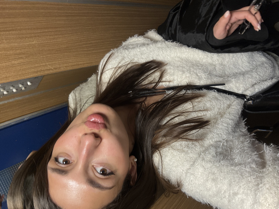 young adult female inside what appears to be an elevator