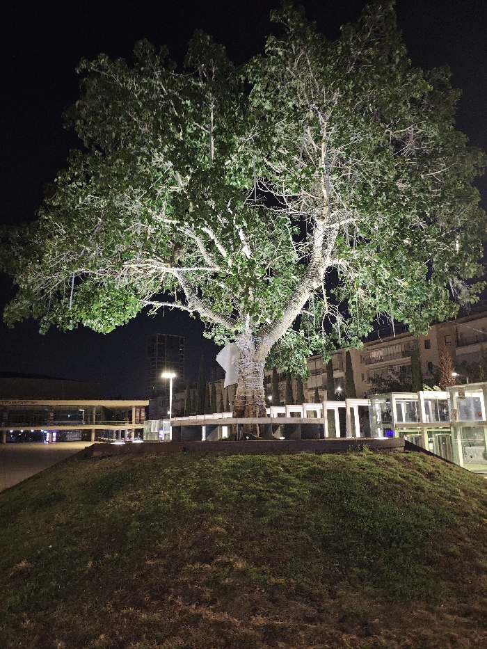 - "A large, mature Silk Floss Tree (*Ceiba speciosa*) stands centrally illuminated at night within Habima Square, Tel Aviv, Israel" by FM-YqxO23, licensed under CC BY 4.0