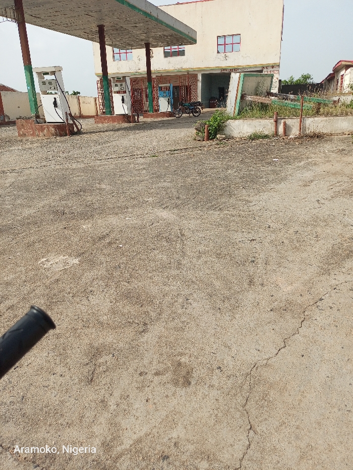 deserted gas station in Ado Ekiti, Nigeria, located at coordinates 7