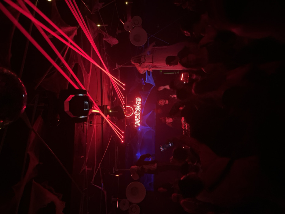 The image depicts an indoor nightlife scene at a venue associated with "wateke," identified as a club or event promoter in Valencia, Spain