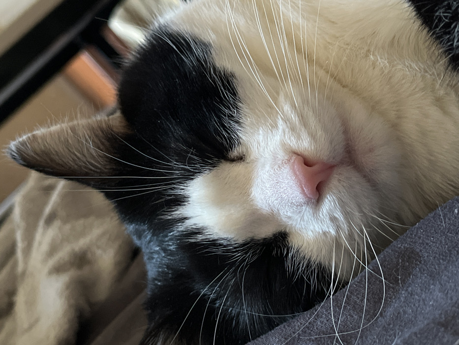 - "A close-up photograph captures a domestic bicolored cat in a state of rest or sleep" by FM-BhCGm1, licensed under CC BY 4.0