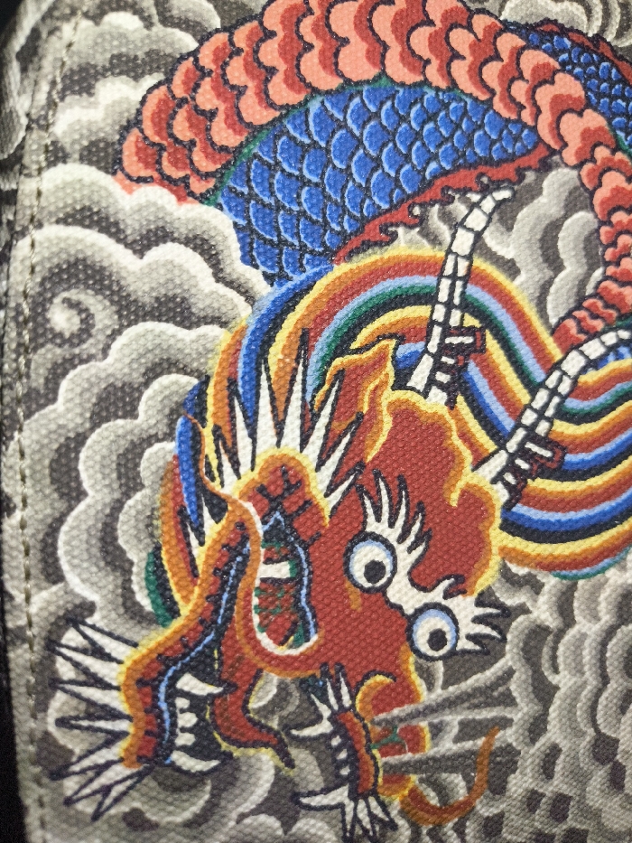 - "The image presents a close-up, high-resolution view of a printed textile featuring a stylized East Asian dragon motif" by FM-NjbJq2, licensed under CC BY 4.0