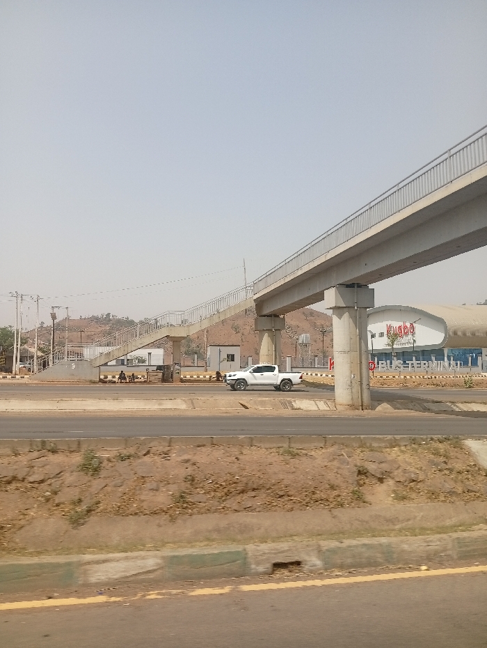 - "The image depicts a roadside scene in Kugbo, Nigeria, characterized by a prominent concrete pedestrian overpass spanning a multi-lane asphalt highway" by FM-ZB4eI3, licensed under CC BY 4.0