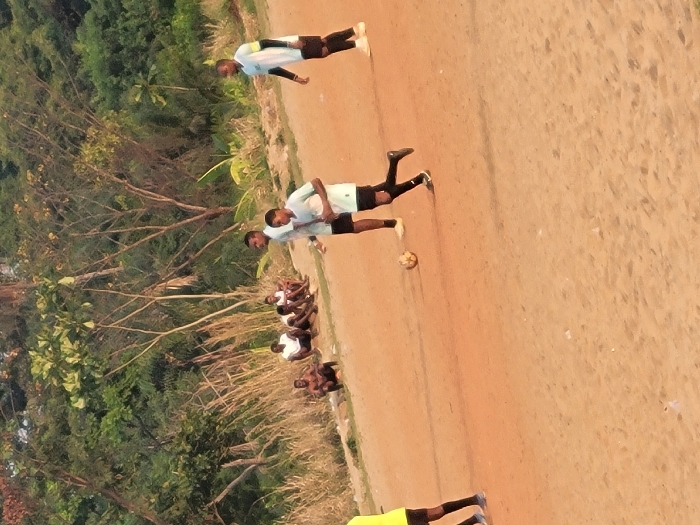 - "A group of people dressed in light-colored shirts and dark shorts are seen on a dirt field next to a wooded area" by FM-0RmgN2, licensed under CC BY 4.0