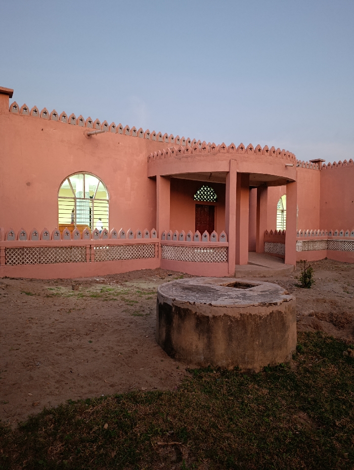 - "The image depicts a salmon-pink colored building with a distinct architectural style, located in a courtyard of dry earth and sparse grass under a clear, light blue sky, in Vanga ward, Kenya" by FM-d4PGJ2, licensed under CC BY 4.0