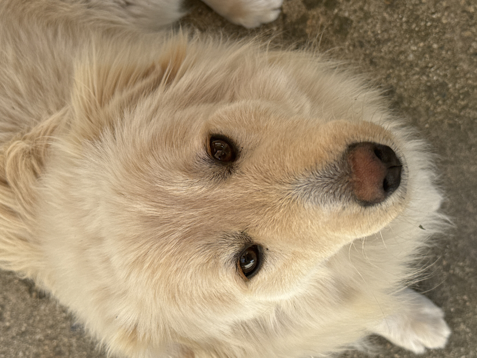 - "A close-up shot shows the face and upper body of a light-colored, medium-sized dog" by FM-6irF43, licensed under CC BY 4.0