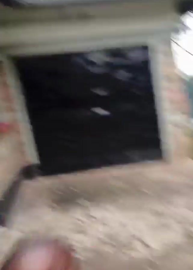 The video starts with a low-angle view of a person wearing a red coat over a green shirt, looking directly at the camera. The camera then quickly moves downward, blurring the view of grass and ground. The video cuts to a blurry and bright shot of the sky, obscuring the person. The video ends with a dark silhouette of the person against the bright sky.