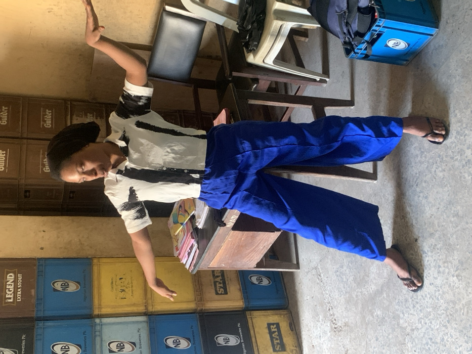 A single individual poses within what appears to be a storage or backroom area in Okene, Nigeria