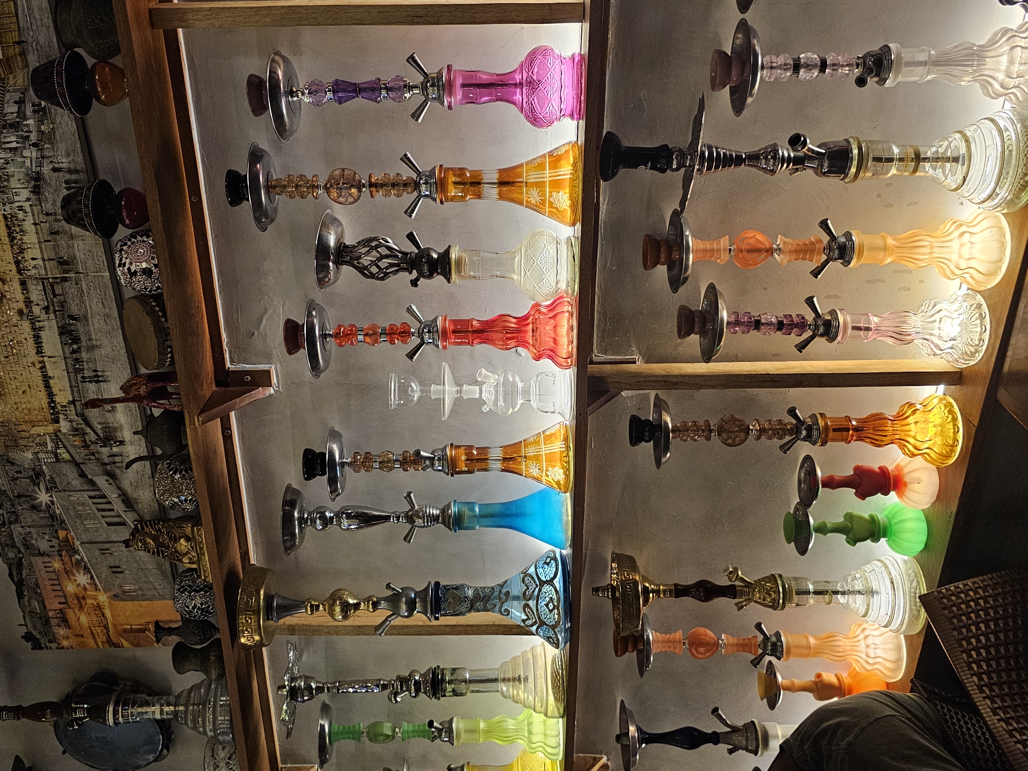 - "collection of hookahs displayed on shelves against a wall" by FM-BT1Sm1, licensed under CC BY 4.0