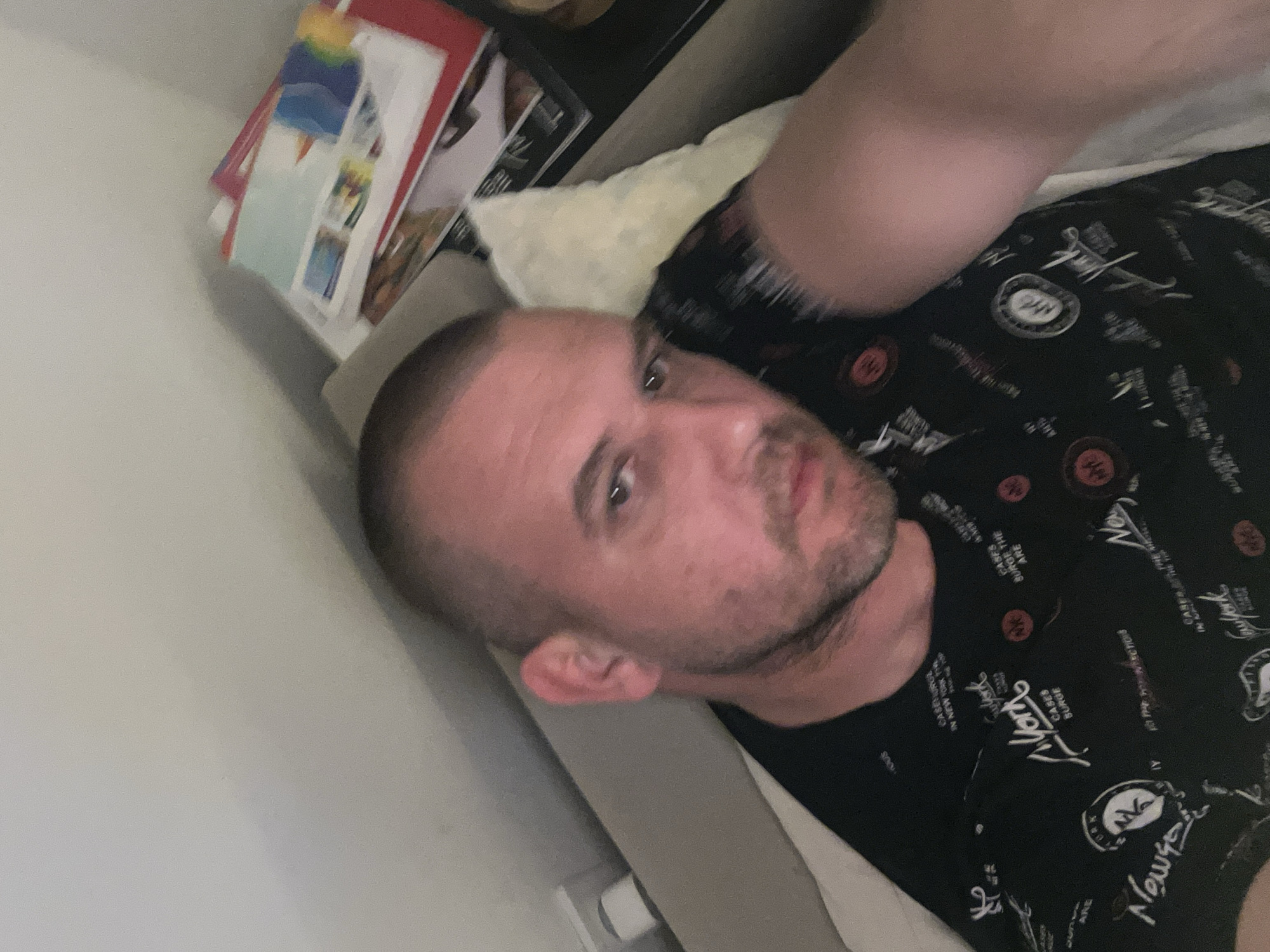 - "man with a shaved head lying down on a gray surface with a cream-colored pillow" by FM-lzWJB3, licensed under CC BY 4.0