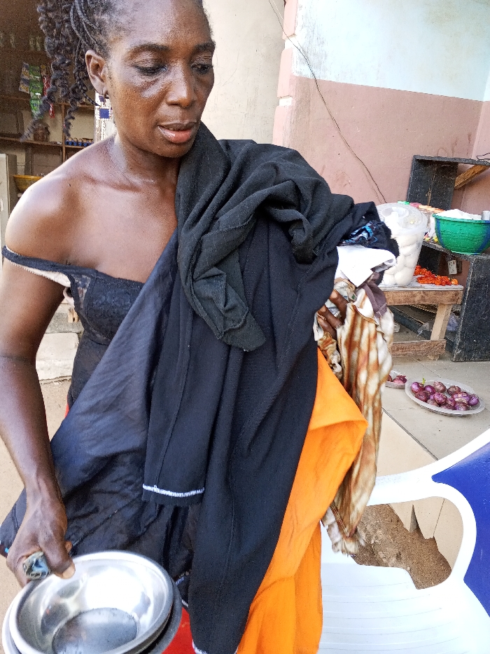 This image, taken in Lokoja, Nigeria, depicts an adult female in a standing position, visible from the chest up