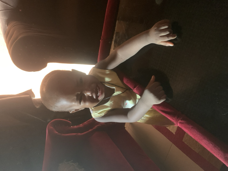 The image displays a young child, appearing to be a toddler, crying indoors in Orifite, Nigeria