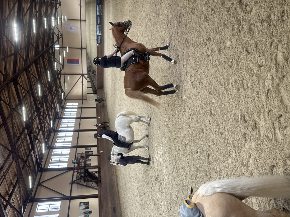 The image displays an indoor equestrian arena located in Otradnoye, Russia