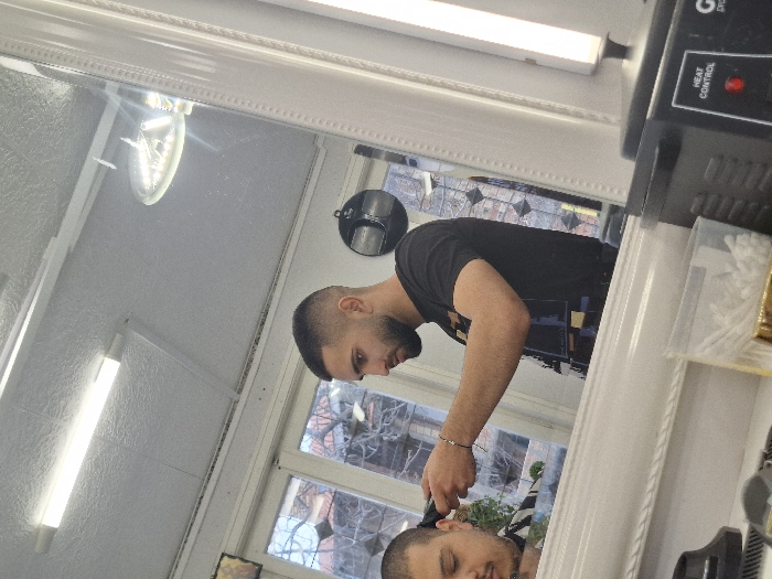 - "An interior scene within a barbershop in Gurkovo, Bulgaria, is depicted, viewed primarily through a large, white-framed mirror with an ornate beaded pattern" by FM-gsatt1, licensed under CC BY 4.0