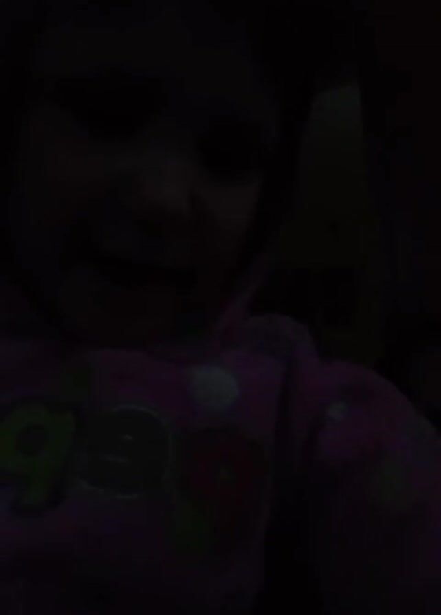 - "A young child in a hooded purple patterned sweatshirt is partially visible in the darkness, smiling slightly at the camera" by FM-ULG7s2, licensed under CC BY 4.0