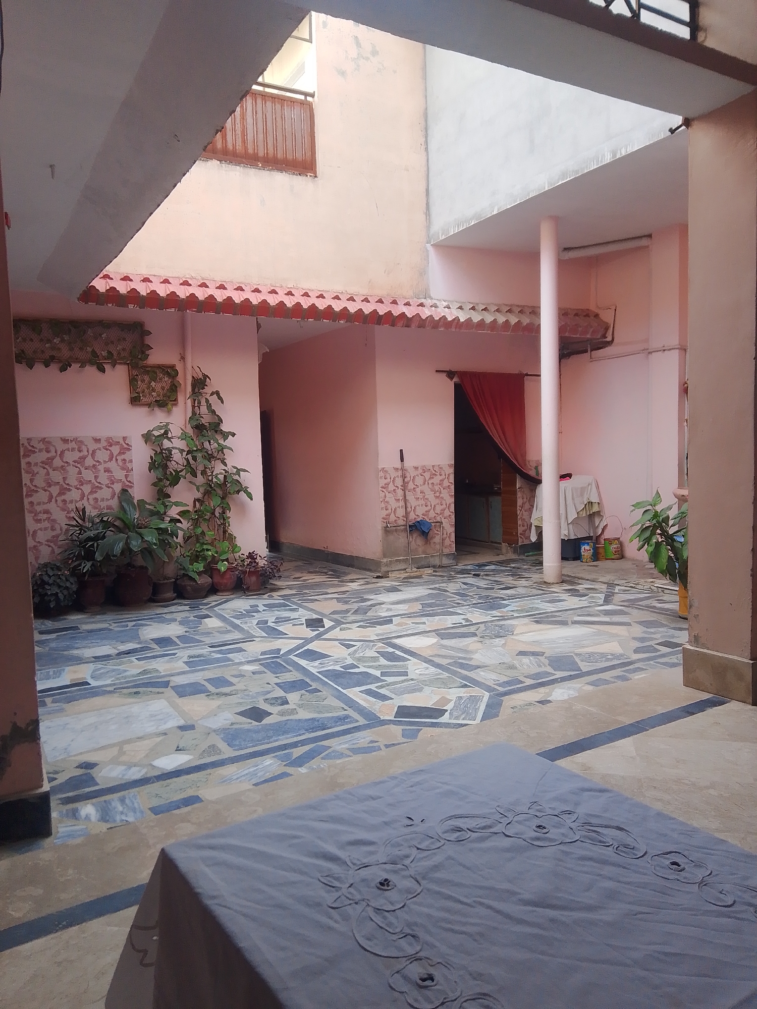 This image depicts an interior residential courtyard located in Mansehra, Pakistan