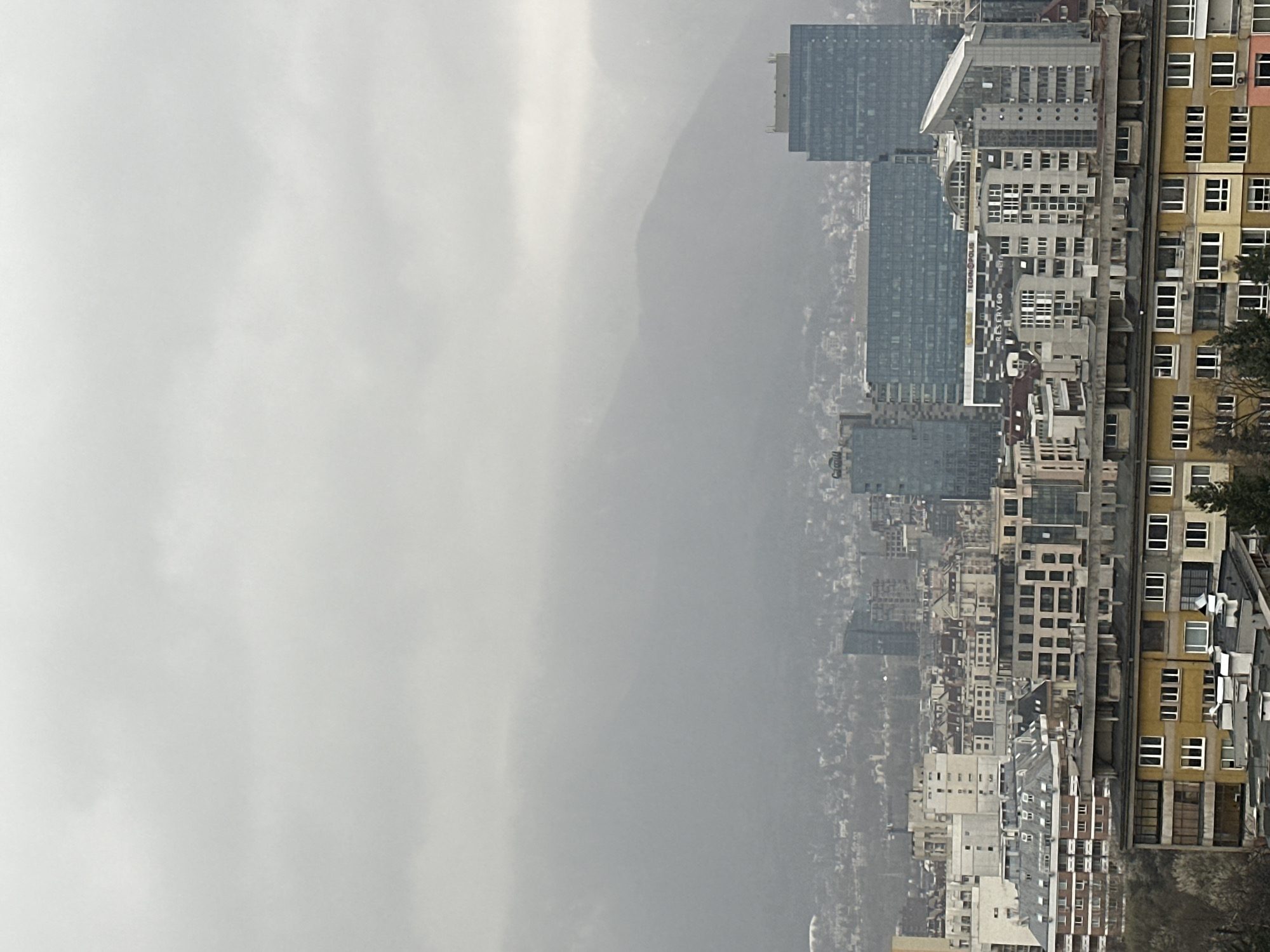 - "An elevated, wide-angle photograph captures a dense urban landscape in Sofia, Bulgaria, under a heavy, uniform overcast sky, indicating diffused daylight conditions" by FM-6tCKA3, licensed under CC BY 4.0