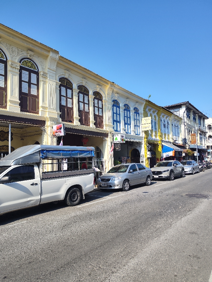 - "This image depicts a street scene in Phuket City Municipality, Thailand, characterized by Sino-Portuguese shophouse architecture under a clear blue sky" by FM-EW4RH2, licensed under CC BY 4.0