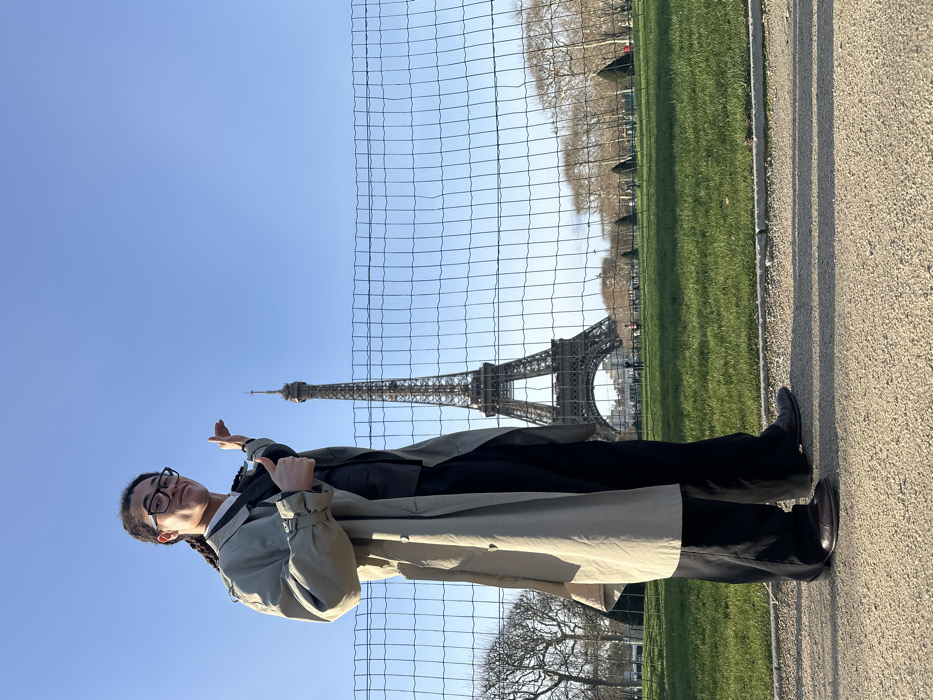 - "A person wearing glasses and a trench coat stands in front of the Eiffel Tower" by FM-iKko62, licensed under CC BY 4.0