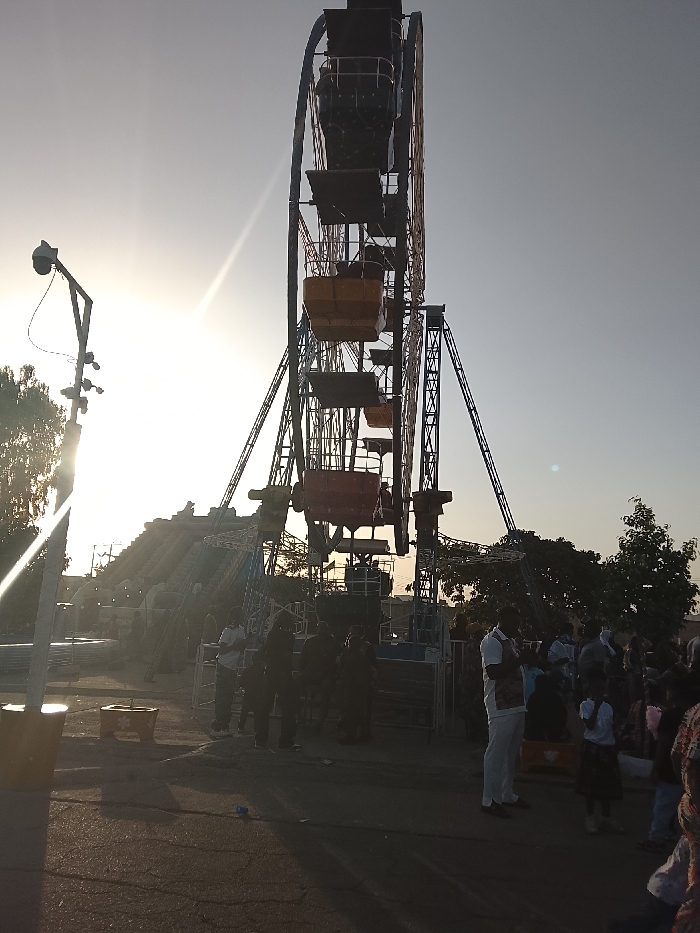 - "The image displays an amusement park scene in Gandu Albasa, Nigeria, captured during late afternoon or early evening with a low sun angle from the left, creating significant backlighting and lens flare" by FM-UjRc32, licensed under CC BY 4.0