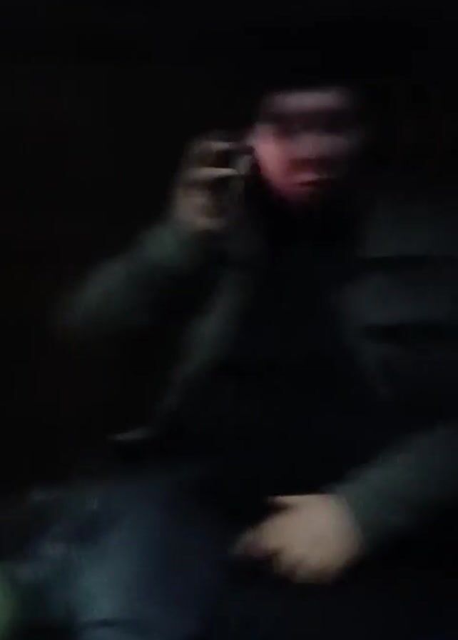 The video starts in a dimly lit setting. A man in a green jacket is briefly visible, followed by a blurry image of a woman. The video then transitions to darkness before showing a faint light source, possibly a street light, filtering through a window. The environment appears to be indoors, though details are obscured by the low light.