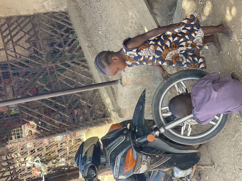 - "This image depicts a street scene in Muchiya, Nigeria, featuring two barefoot children interacting with a parked motorcycle" by FM-D7KQv1, licensed under CC BY 4.0