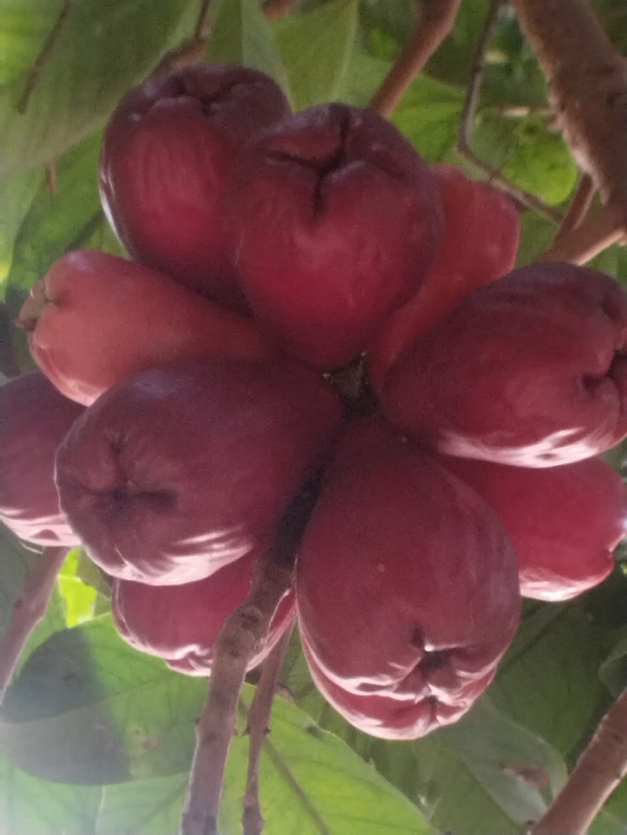 - "In Kutaglumpang, Indonesia, a close-up image captures a cluster of approximately twelve bell-shaped fruits, consistent with water apples, hanging from a tree branch" by FM-vhmNj2, licensed under CC BY 4.0