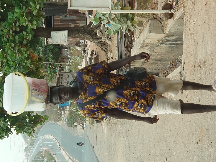 A dark-skinned adult male is depicted walking on an unpaved dirt path in an Unknown city, Unknown country