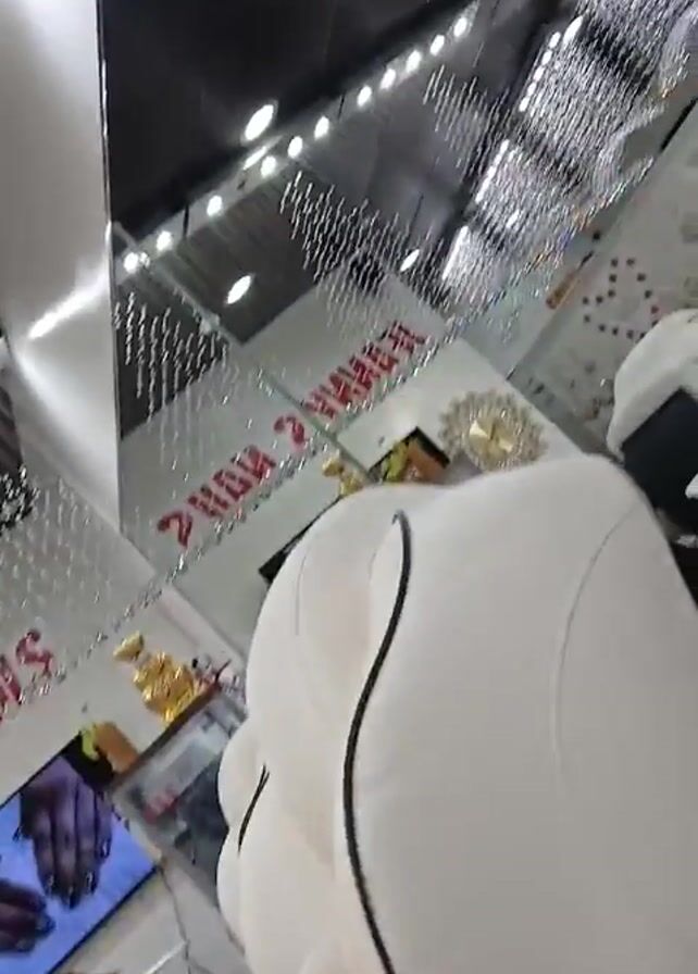 The camera pans upwards to capture the interior of a nail salon